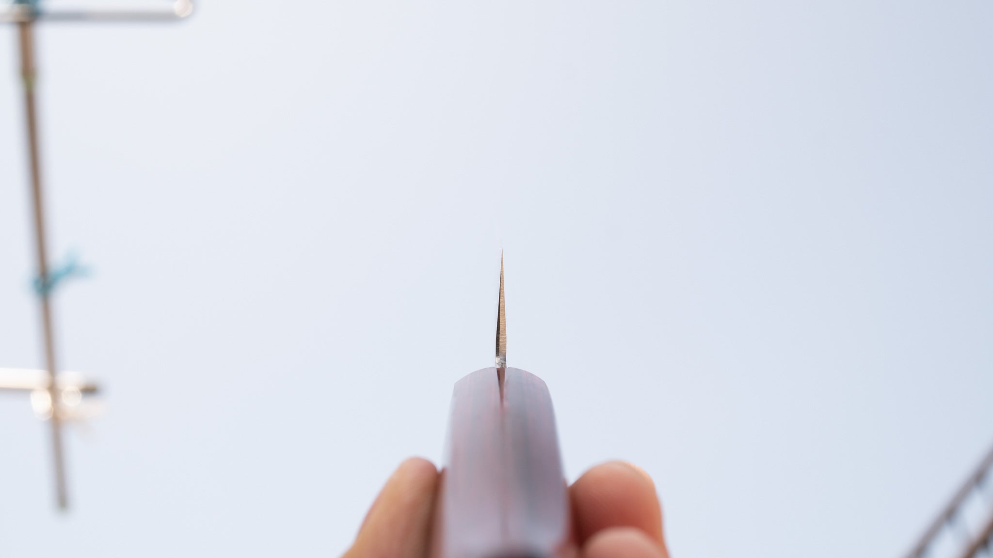 Pas på æggen, for din egen og knivens skyld. En saya(skede) er optimal, men et simpelt klingedæksel vil være fint, hvis du opbevarer knive i en skuffe eller rejsetaske. Løst liggende i en skuffe er en super dårlig løsning.