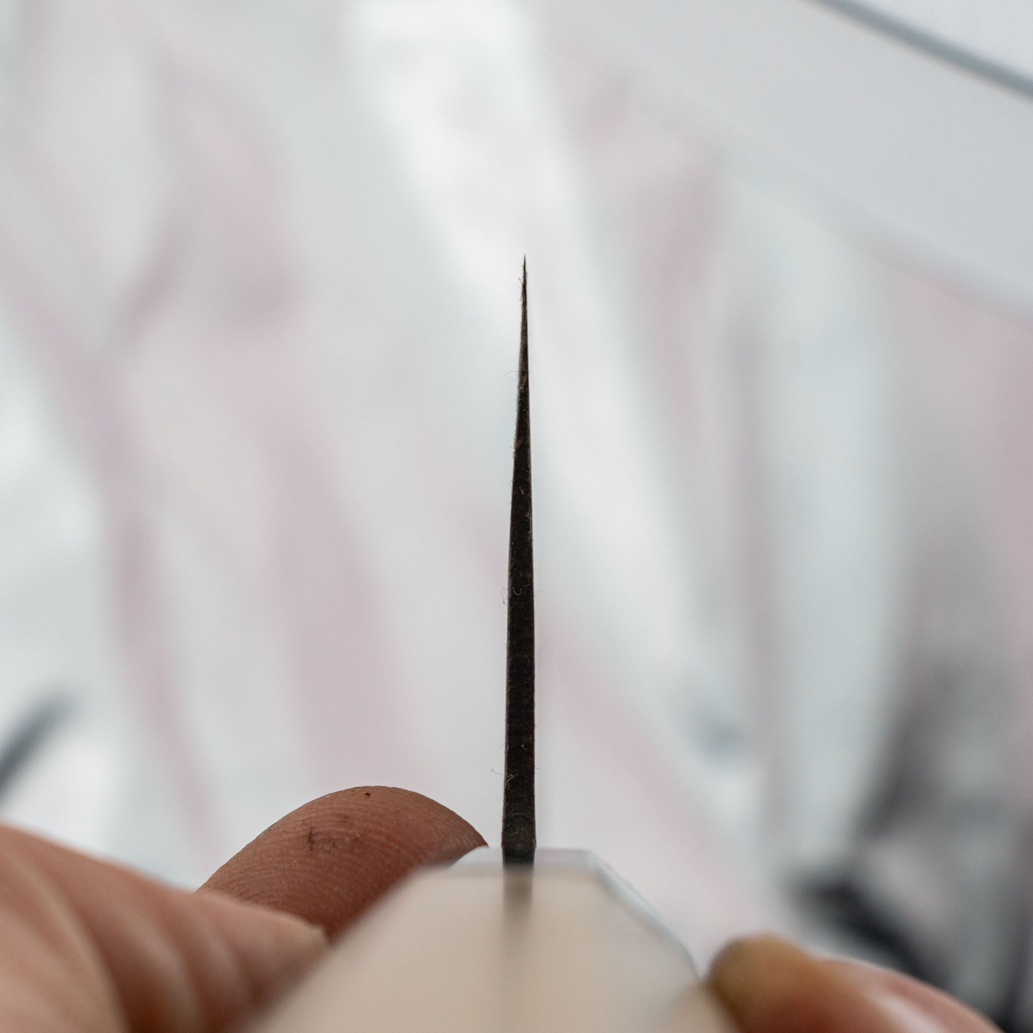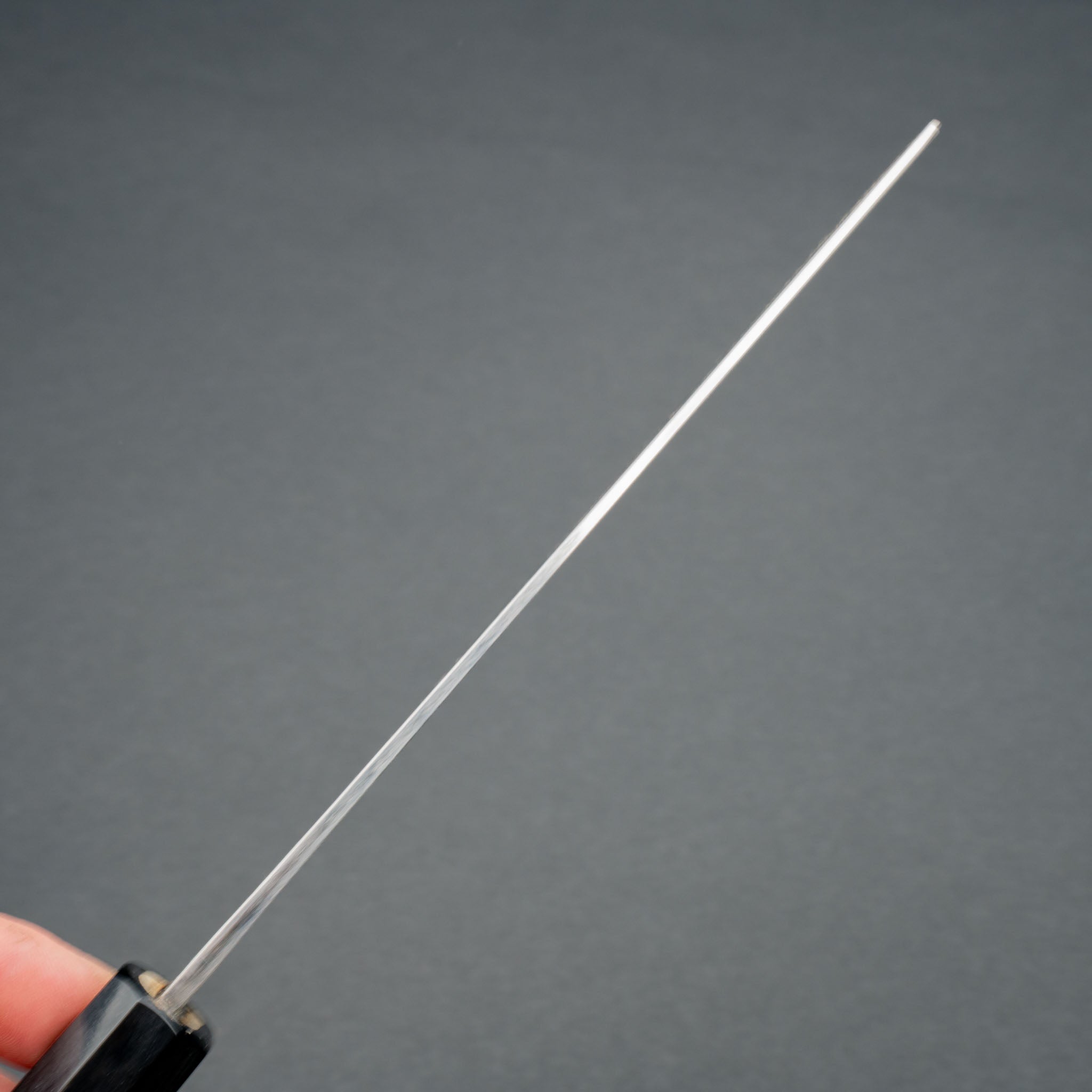 Kniven er bygget op med en hård kerne af Aogami #1, omsluttet af et blødt lag rustfrit stål på hver side.