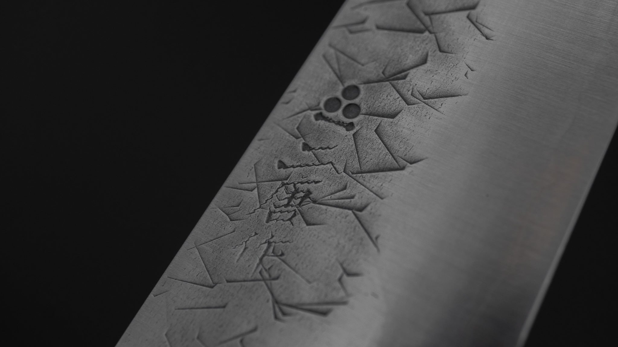 Vær opmærksom på hvor hårdt kniven er hærdet. Vær især påpasselig med knive på 60 hrc og derover. Hårde fødevarer kan ”chippe” klingen. Pas på med frugtsten, knogler, skaldyr, træagtige stængler eller meget hård ost. Frosne fødevarer er totalt no-go.