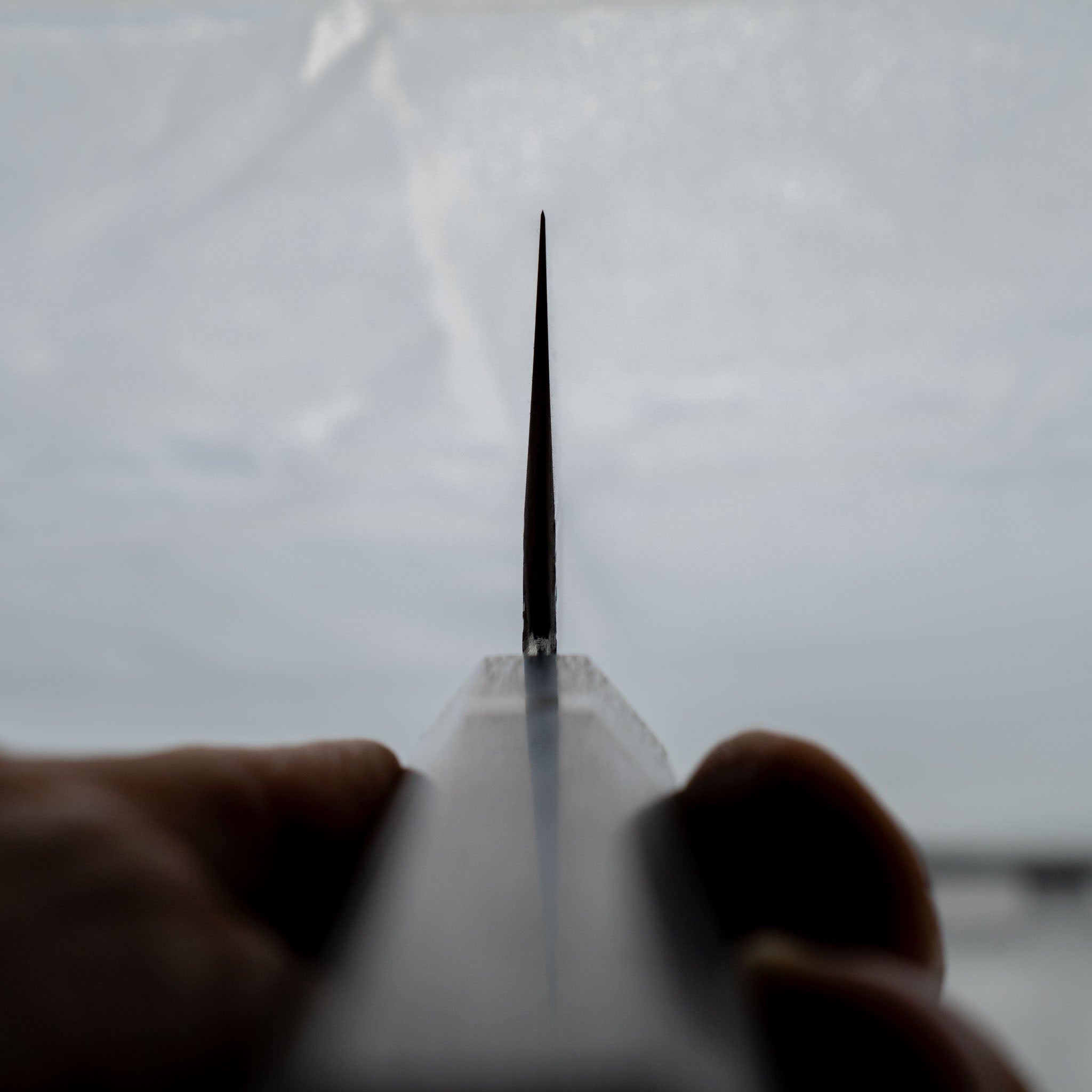 Vær opmærksom på hvor hårdt kniven er hærdet. Vær især påpasselig med knive på 60 hrc og derover. Hårde fødevarer kan ”chippe” klingen. Pas på med frugtsten, knogler, skaldyr, træagtige stængler eller meget hård ost. Frosne fødevarer er totalt no-go.