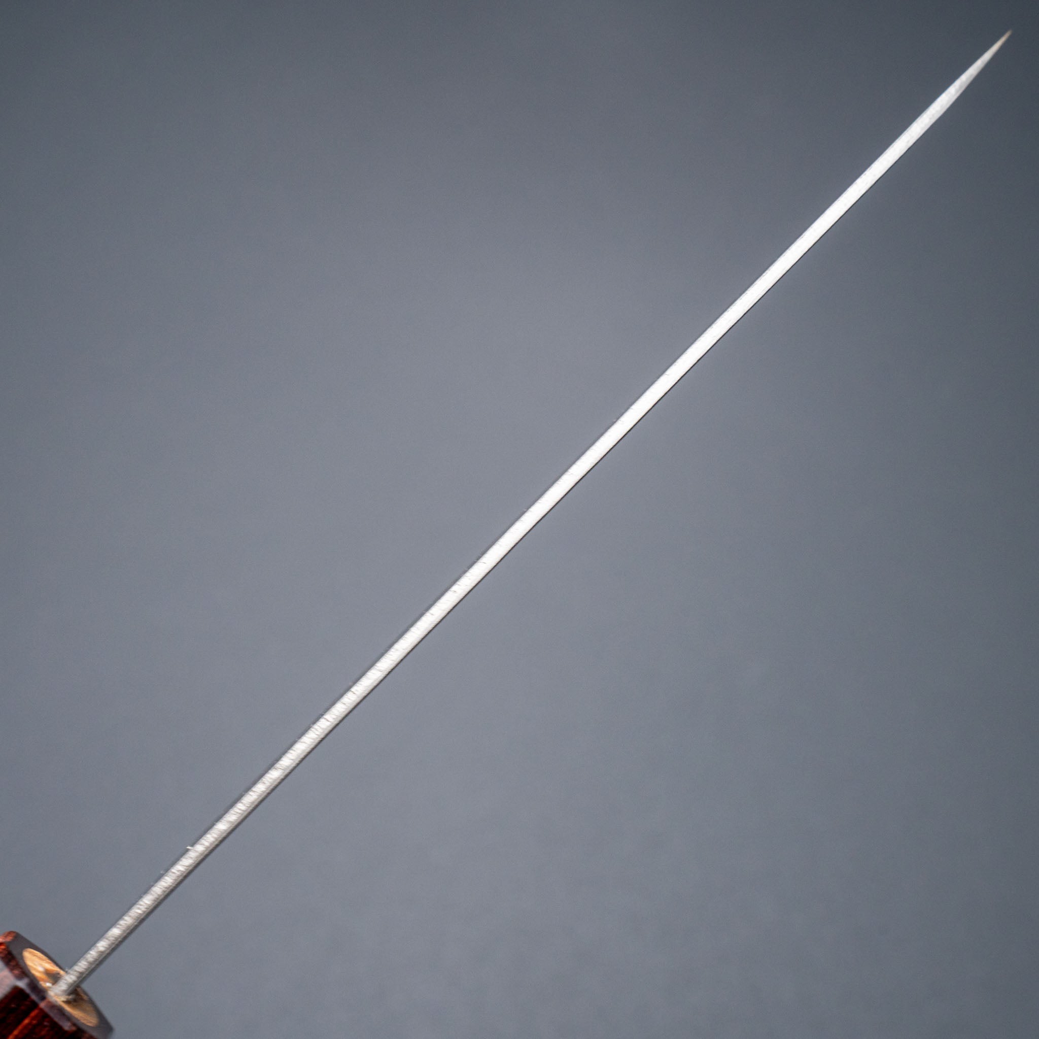 Da kernestålet af Aogami Super ikke er rustfrit, må der forventes lidt ekstra pleje og omhu ved brug. Det anbefales at kniven vaskes og tørres efter brug, og det må forventes at kernestålet udvikler patina over tid. Noget som i vores øjne er med til at give knive sjæl og charme.