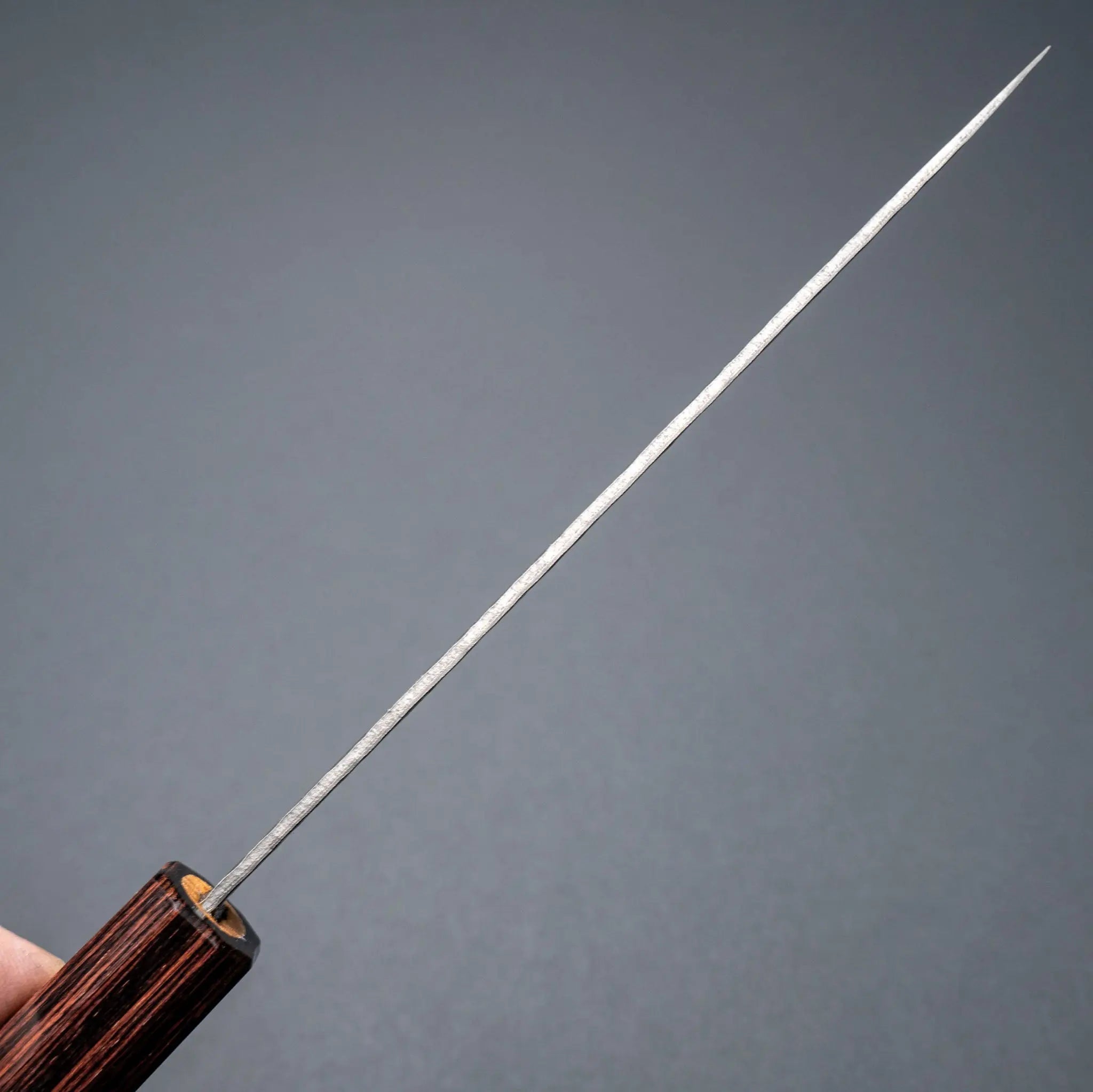 Kniven har kerne af white 1 (Shirogami 1) carbon stål som kan holde en importerede skarp æg, i rigtig lang tid. Omkring det hårde kernestål, er der på hver side et lag af rustfrit stål.