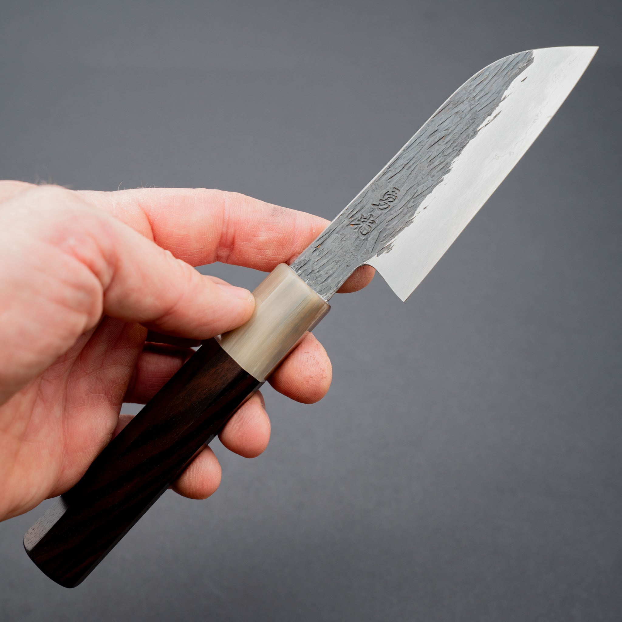 Isamitsu White #1 Stainless Clad Kurouchi Paring 90mm Ebony Handle