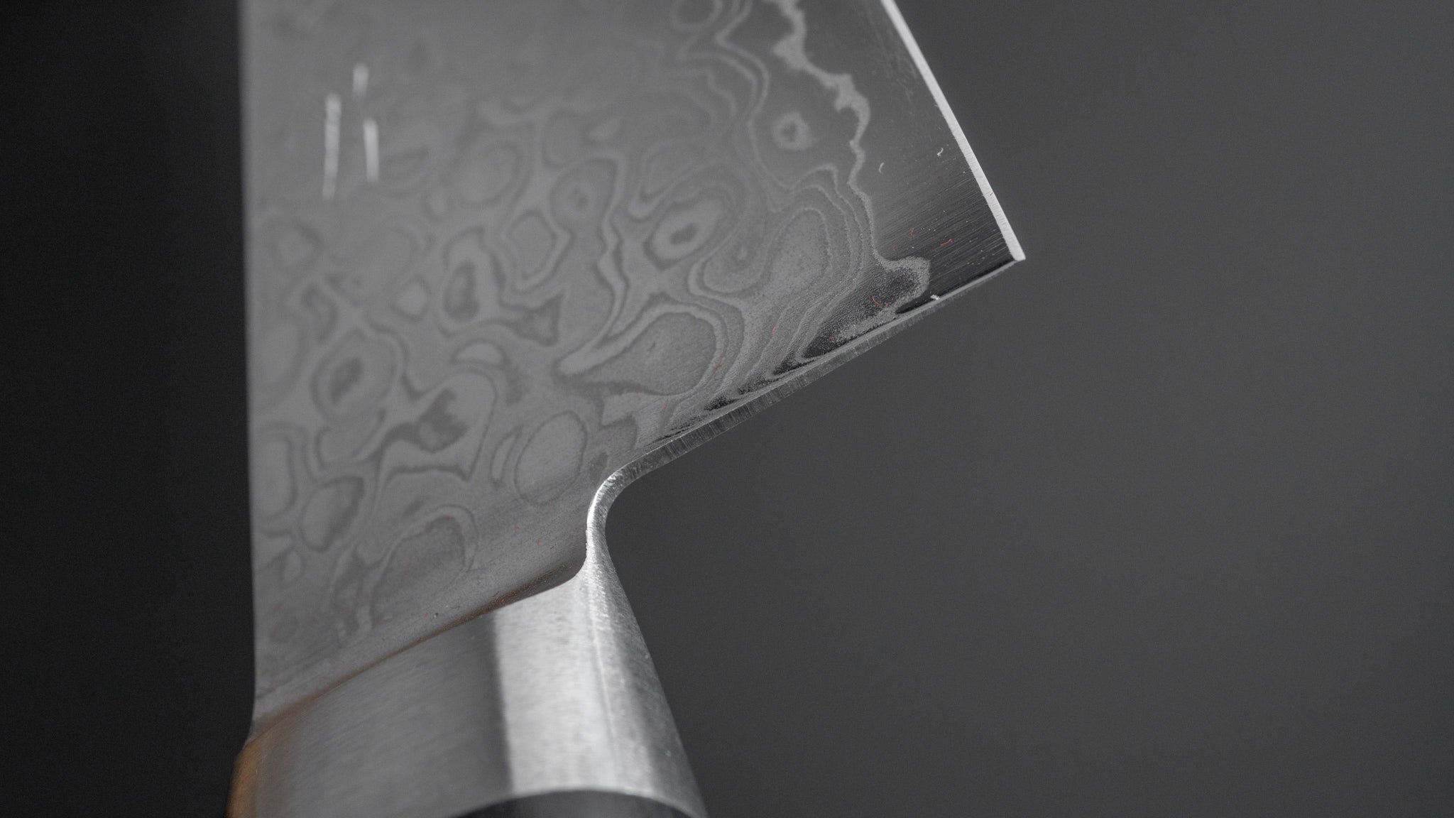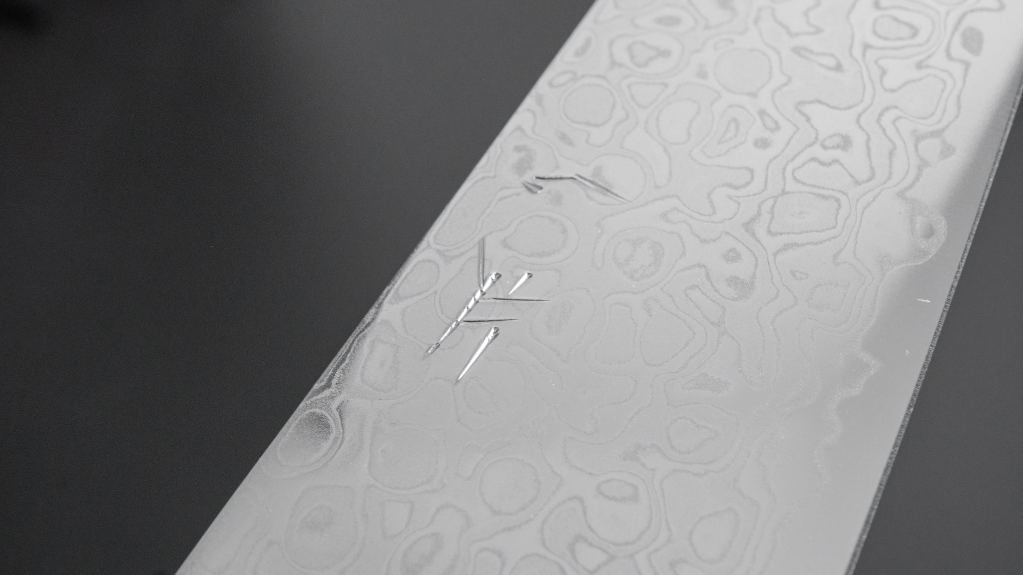 Vær opmærksom på hvor hårdt kniven er hærdet. Vær især påpasselig med knive på 60 hrc og derover. Hårde fødevarer kan ”chippe” klingen. Pas på med frugtsten, knogler, skaldyr, træagtige stængler eller meget hård ost. Frosne fødevarer er totalt no-go.