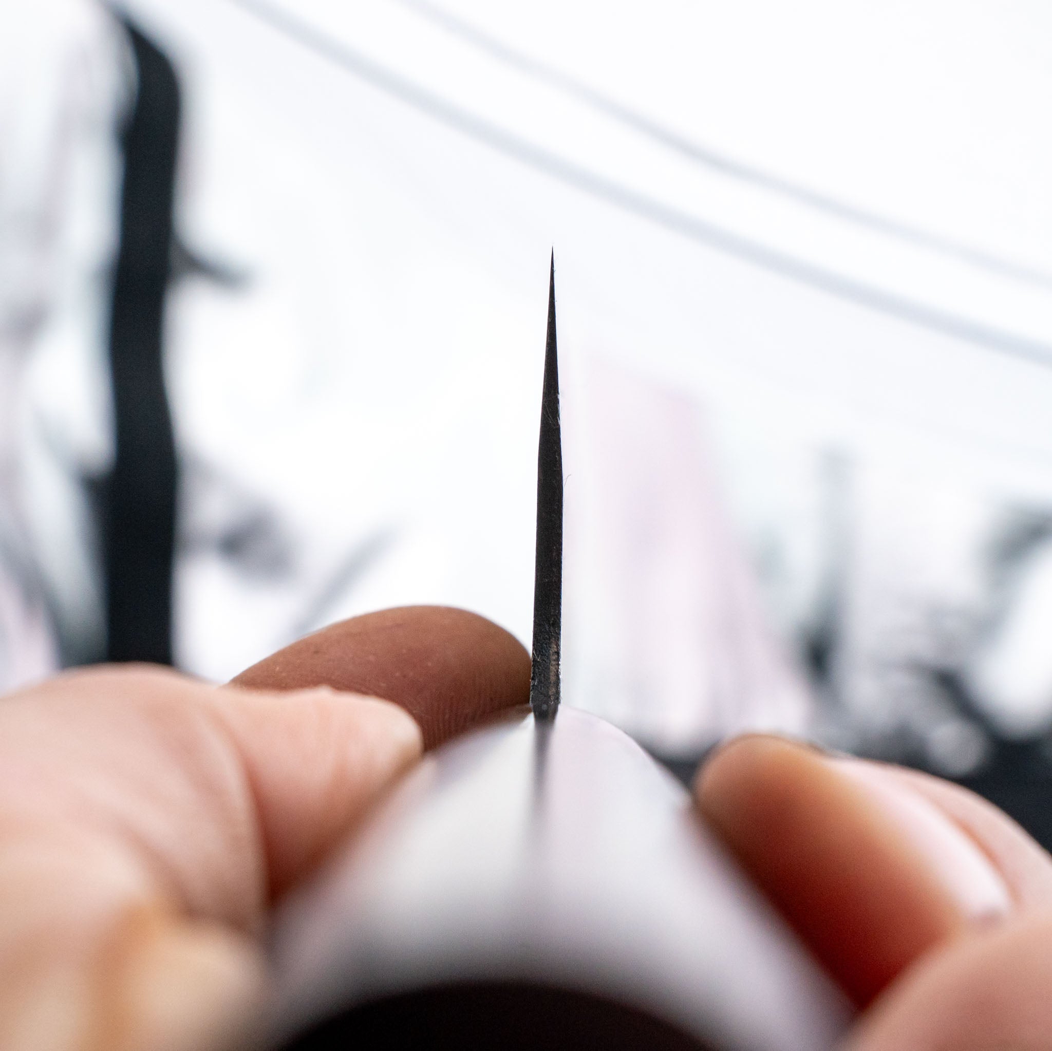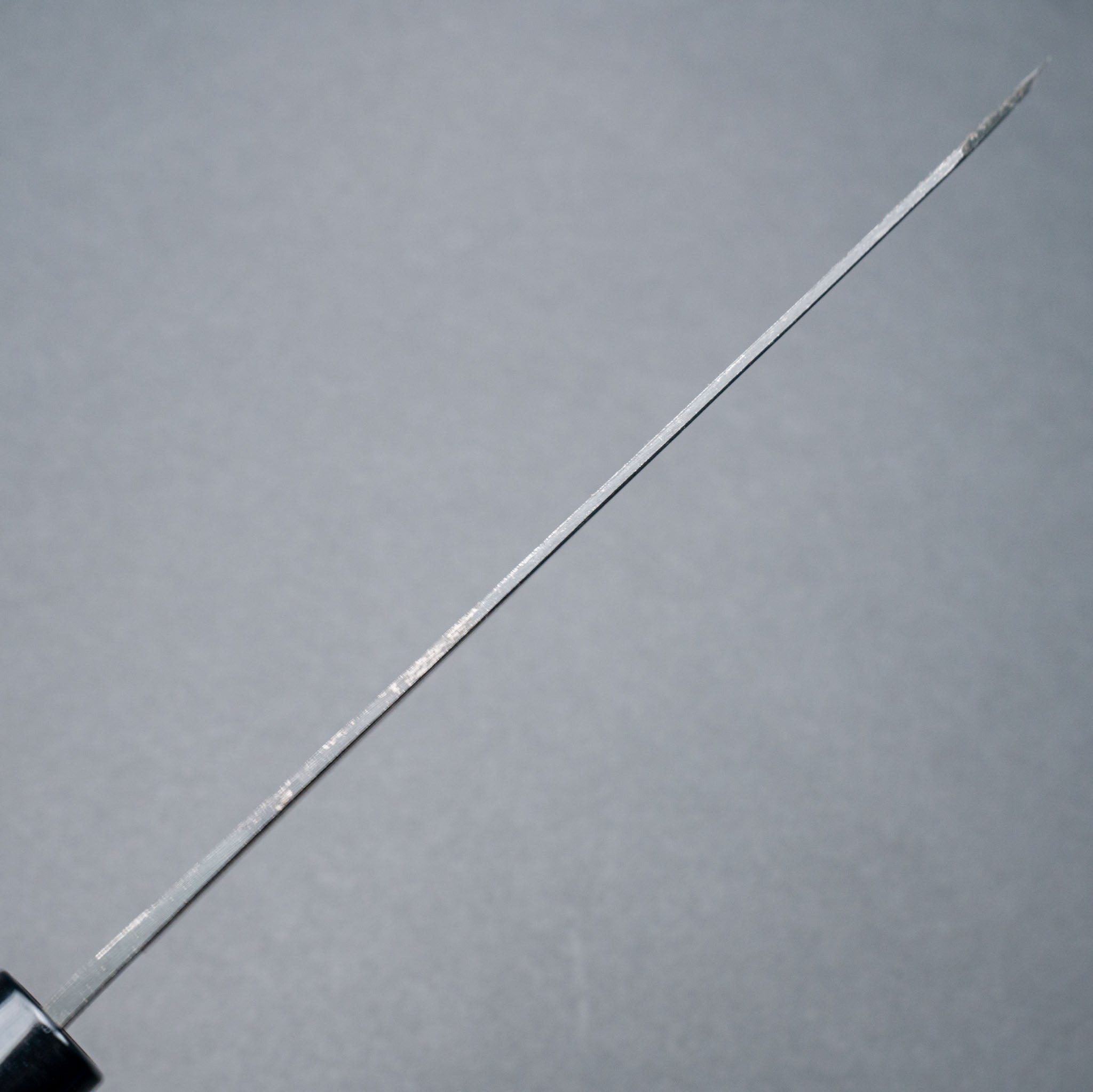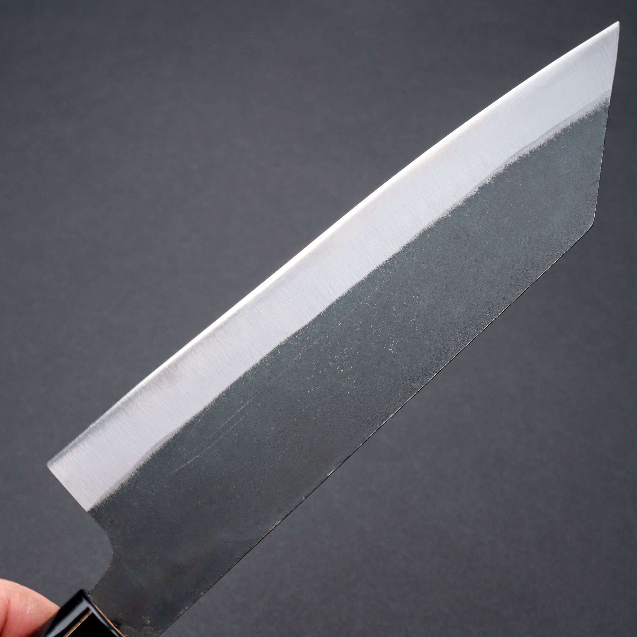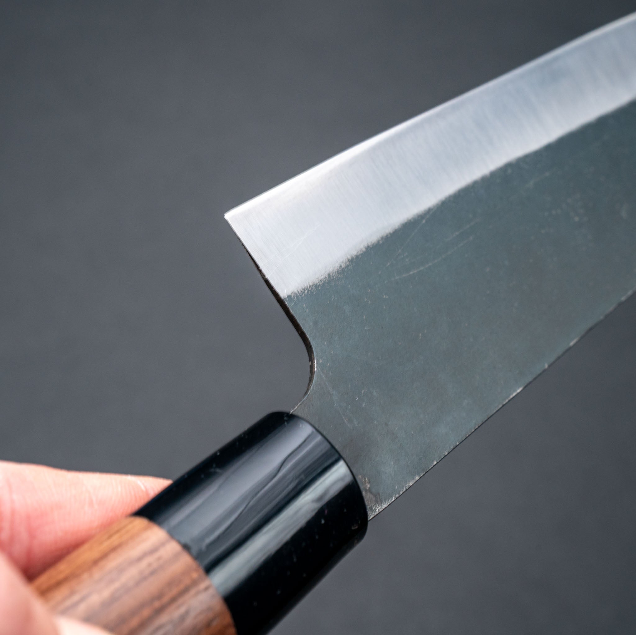 Kniven er bygget op med en hård kerne af Shirogami #2, omsluttet af et blødt lag stål på hver side.