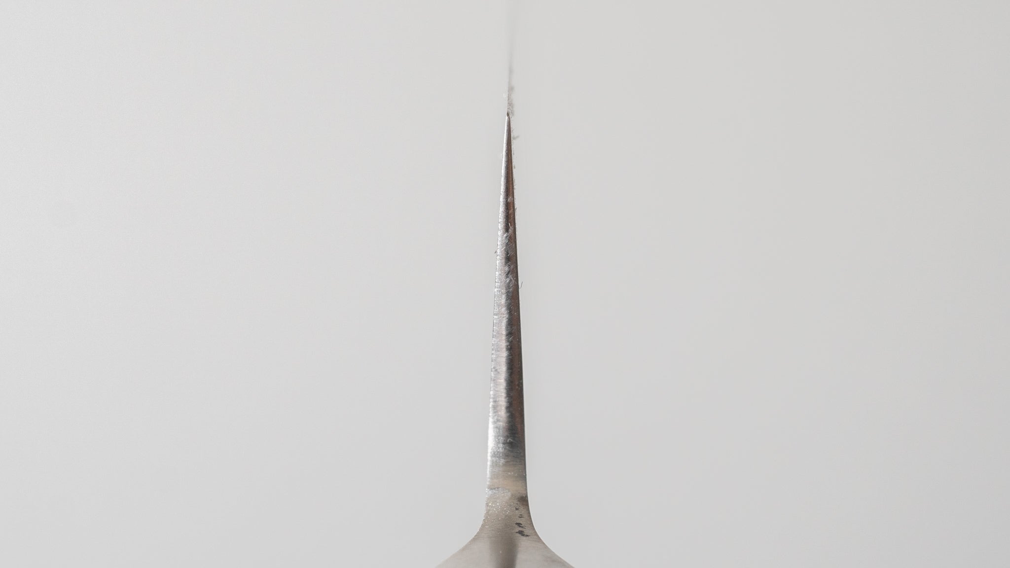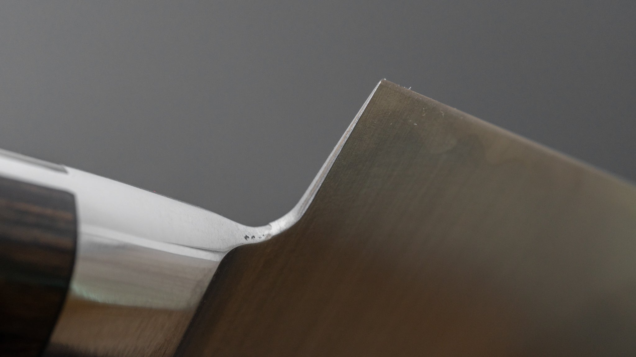 Vær opmærksom på hvor hårdt kniven er hærdet. Vær især påpasselig med knive på 60 hrc og derover. Hårde fødevarer kan ”chippe” klingen. Pas på med frugtsten, knogler, skaldyr, træagtige stængler eller meget hård ost. Frosne fødevarer er totalt no-go.