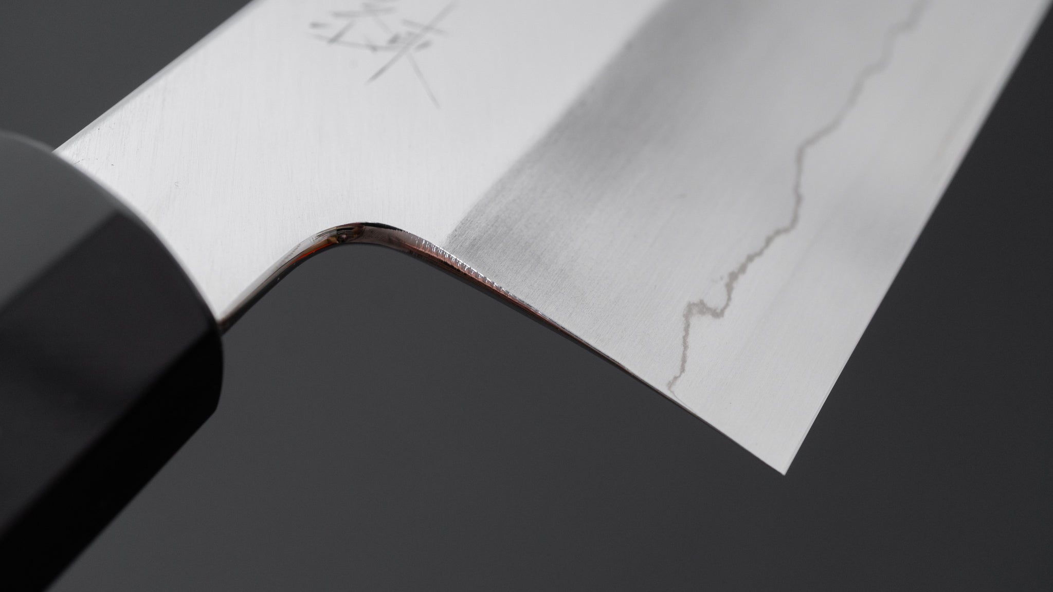 Knivens kerne er i Ginsan 3 (silver#3), udmærker sig ved at være både at være rustfrit og super nemt at slibe skarpt.