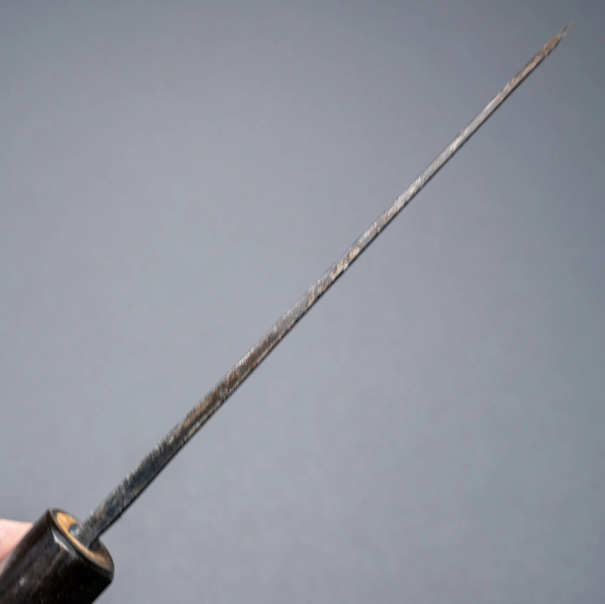 Stålet udvikler patina over tid, og bladet vil få en mat og mørkere fremtoning.