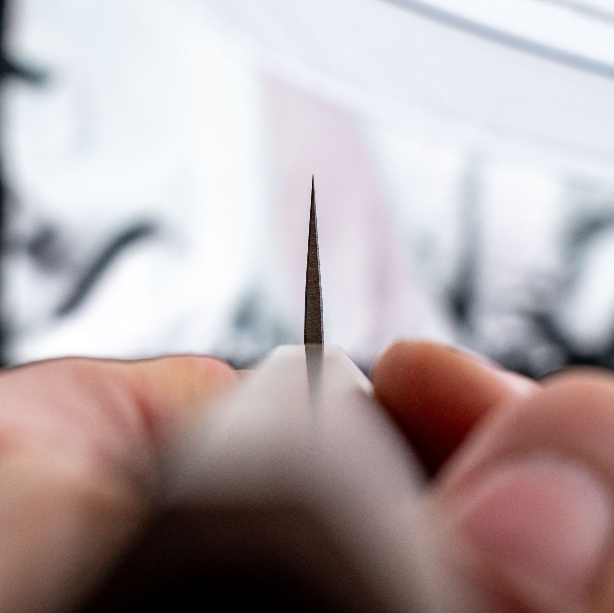Vær opmærksom på hvor hårdt kniven er hærdet. Vær især påpasselig med knive på 60 hrc og derover. Hårde fødevarer kan ”chippe” klingen. Pas på med frugtsten, knogler, skaldyr, træagtige stængler eller meget hård ost. Frosne fødevarer er totalt no-go.