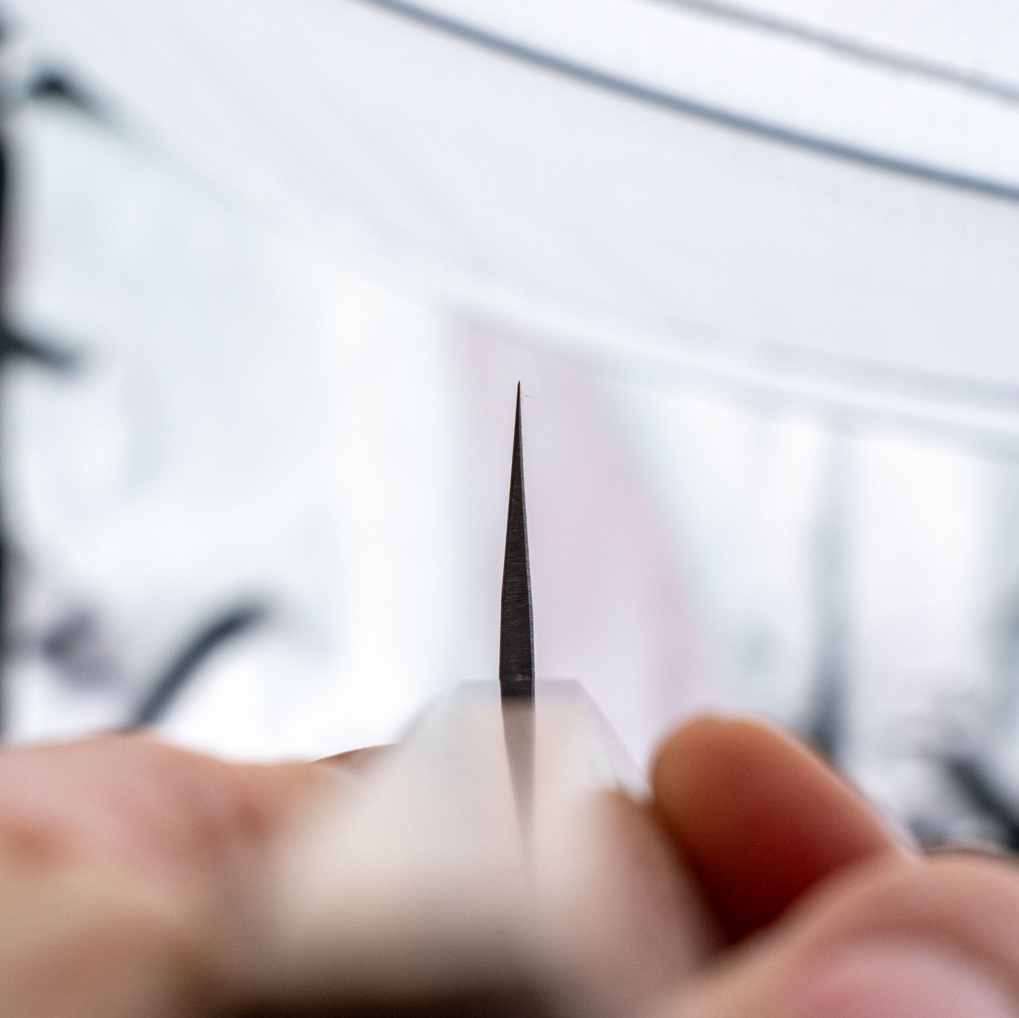 Vær opmærksom på hvor hårdt kniven er hærdet. Vær især påpasselig med knive på 60 hrc og derover. Hårde fødevarer kan ”chippe” klingen. Pas på med frugtsten, knogler, skaldyr, træagtige stængler eller meget hård ost. Frosne fødevarer er totalt no-go.