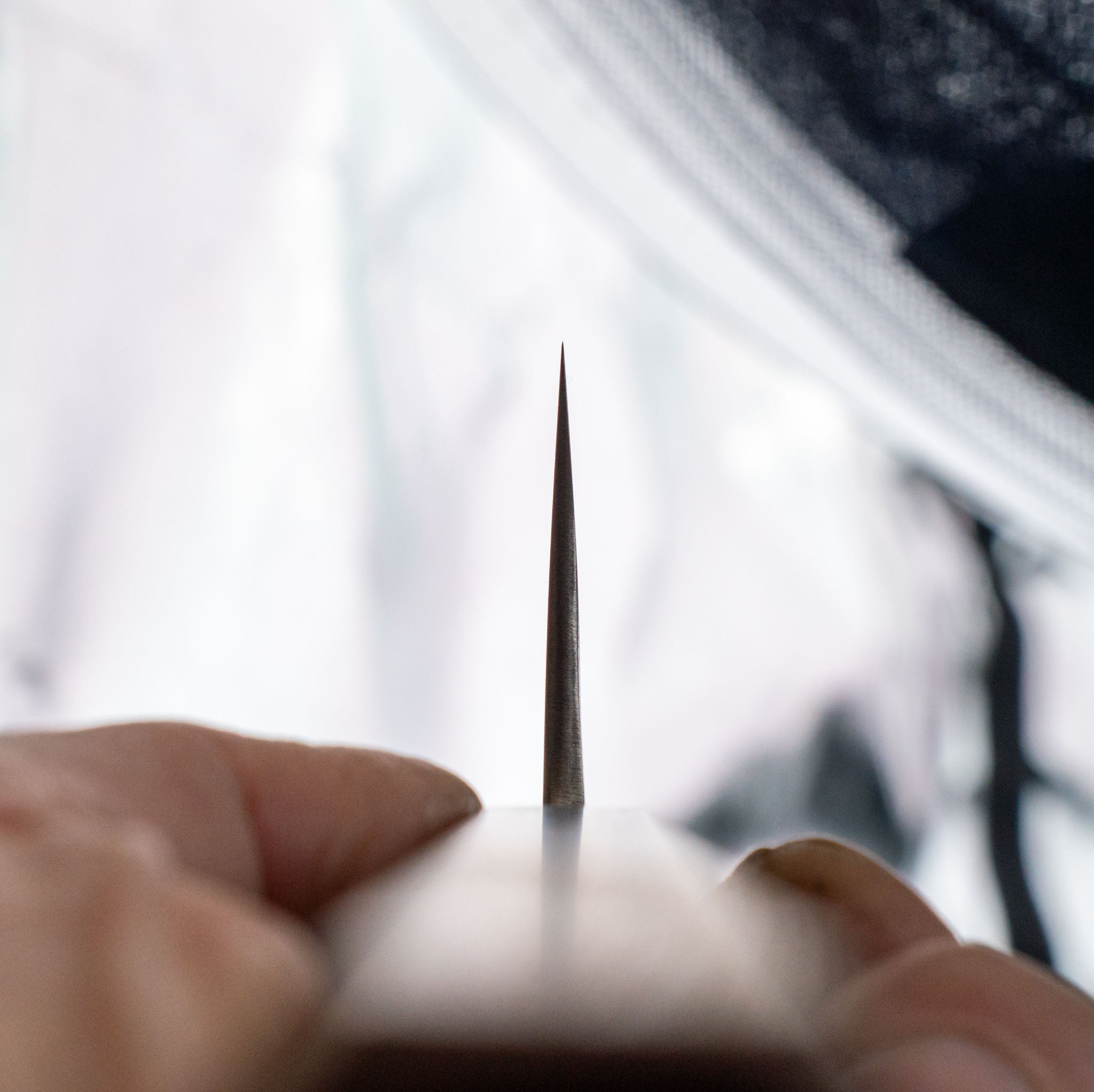 Vær opmærksom på hvor hårdt kniven er hærdet. Vær især påpasselig med knive på 60 hrc og derover. Hårde fødevarer kan ”chippe” klingen. Pas på med frugtsten, knogler, skaldyr, træagtige stængler eller meget hård ost. Frosne fødevarer er totalt no-go.
