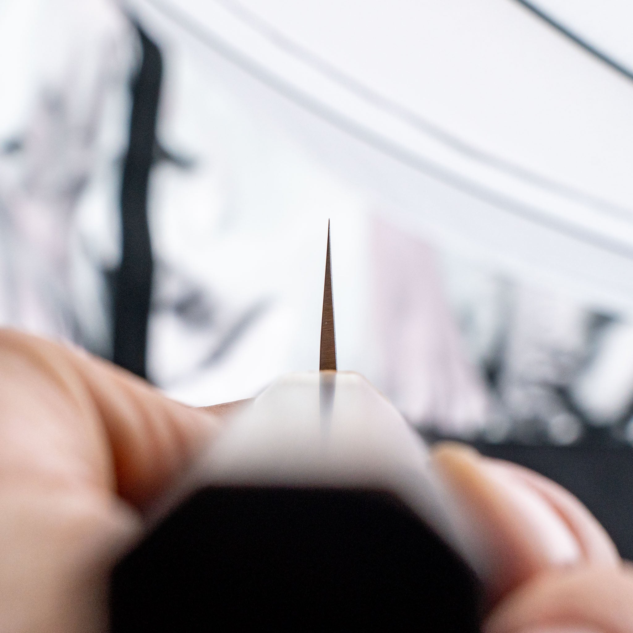 Vær opmærksom på hvor hårdt kniven er hærdet. Vær især påpasselig med knive på 60 hrc og derover. Hårde fødevarer kan ”chippe” klingen. Pas på med frugtsten, knogler, skaldyr, træagtige stængler eller meget hård ost. Frosne fødevarer er totalt no-go.
