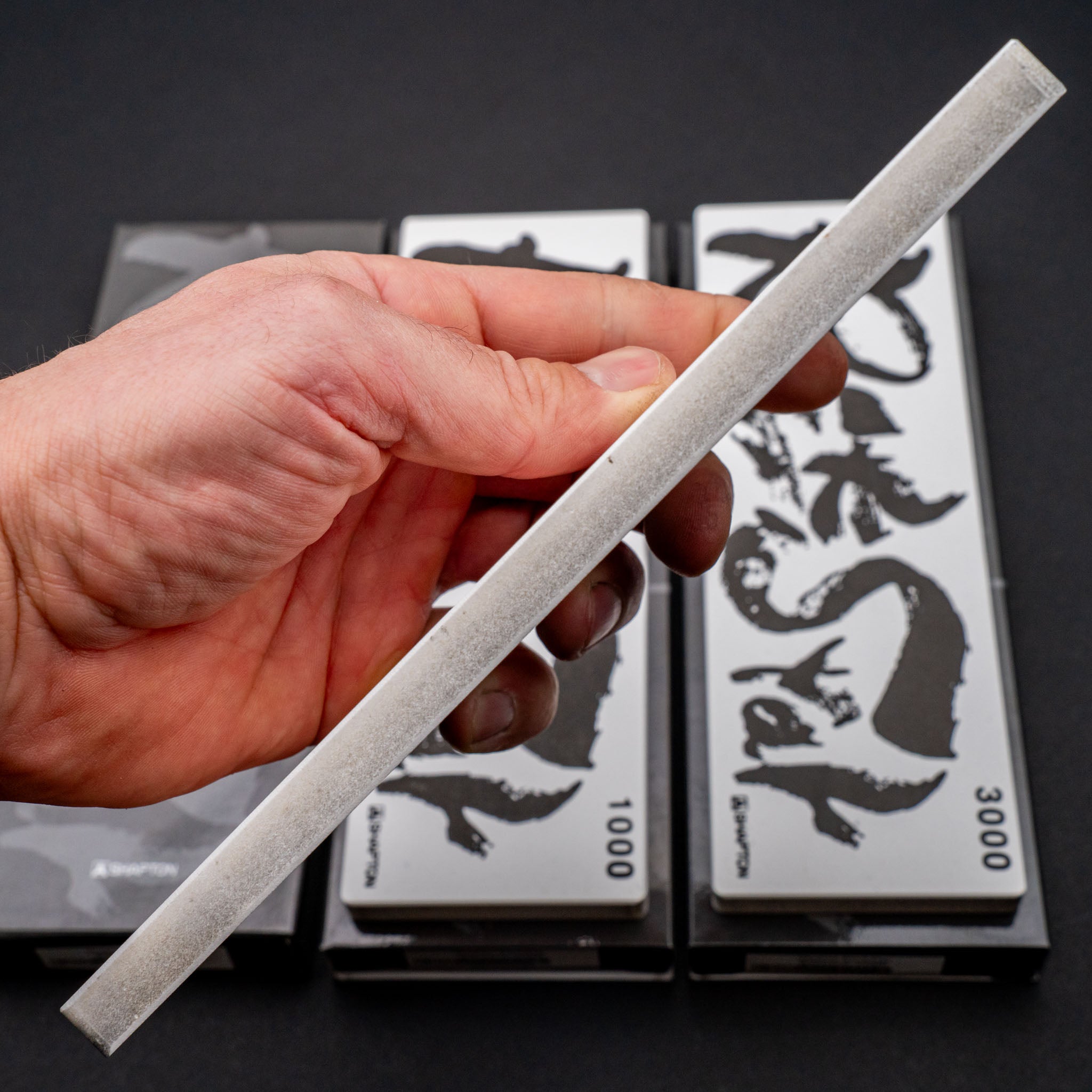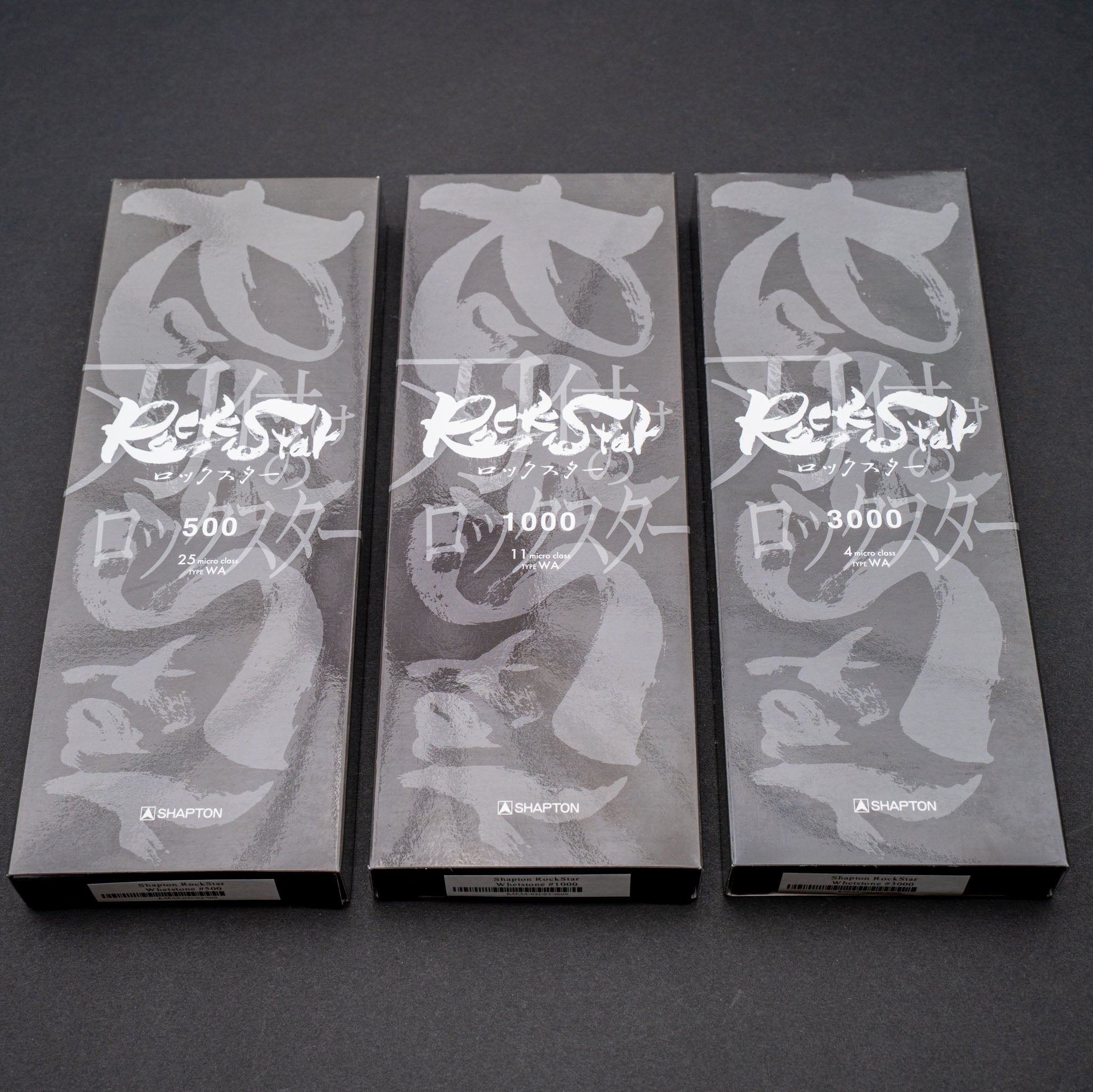 Vådstenssættet består af Shapton Rockstar vådslibesten i 3 kornstørrelser, grov i korn 500, mellem i korn 1000 og fin i korn 3000. Med sættet vil du kunne slibe en kniv fra helt sløv til den sidste fine polering der bringer æggen skalpel skarp.